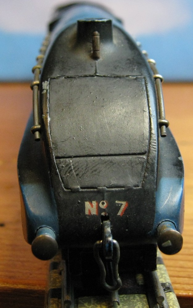 Whistle in front of chimney and number 7 above the front hook.