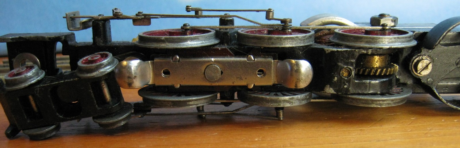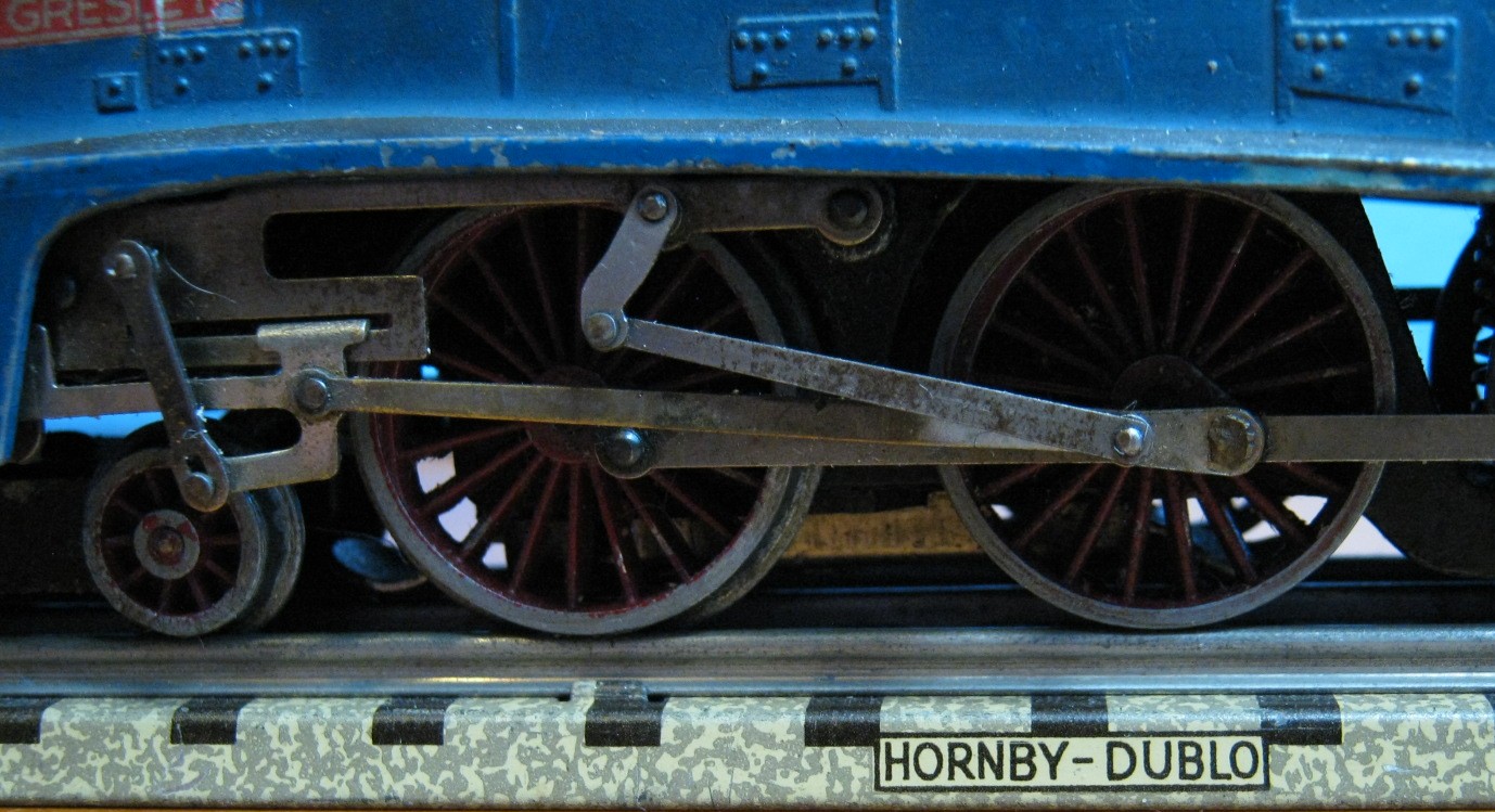 The open valanced skirt allows us to see the Walschaerts valve gear. The pre-war variant had a deep skirt which only allowed us to see the bottom half of the wheels. This was within keeping with changes to the real locomotive then still in use.