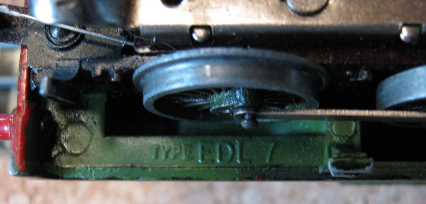 "TYPE EDL 7" stamped in the diecast under the wheel arch. My very early variants, two LMS and the GWR does not have it. But the LNER and another LMS locomotive does have the EDL 7. So it must have been added in the early 1950s. My British Railways locomotives from 1953 have the stamping, but it has been changed to EDL 17.