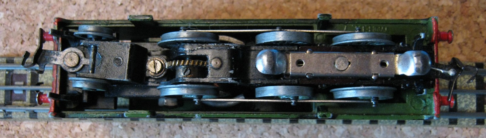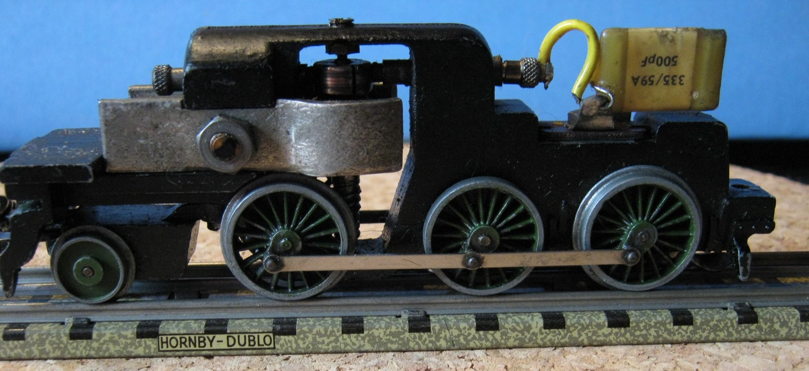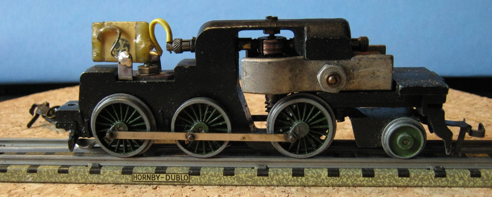 After the Second World War the clockwork variant was discontinued and only the electric variant was made. The voltage being 12 volt DC in the UK. The magnet design and the chassis being altered to accommodate it were the main changes, along with the cut out in the lower bufferbeam for the new couplings.