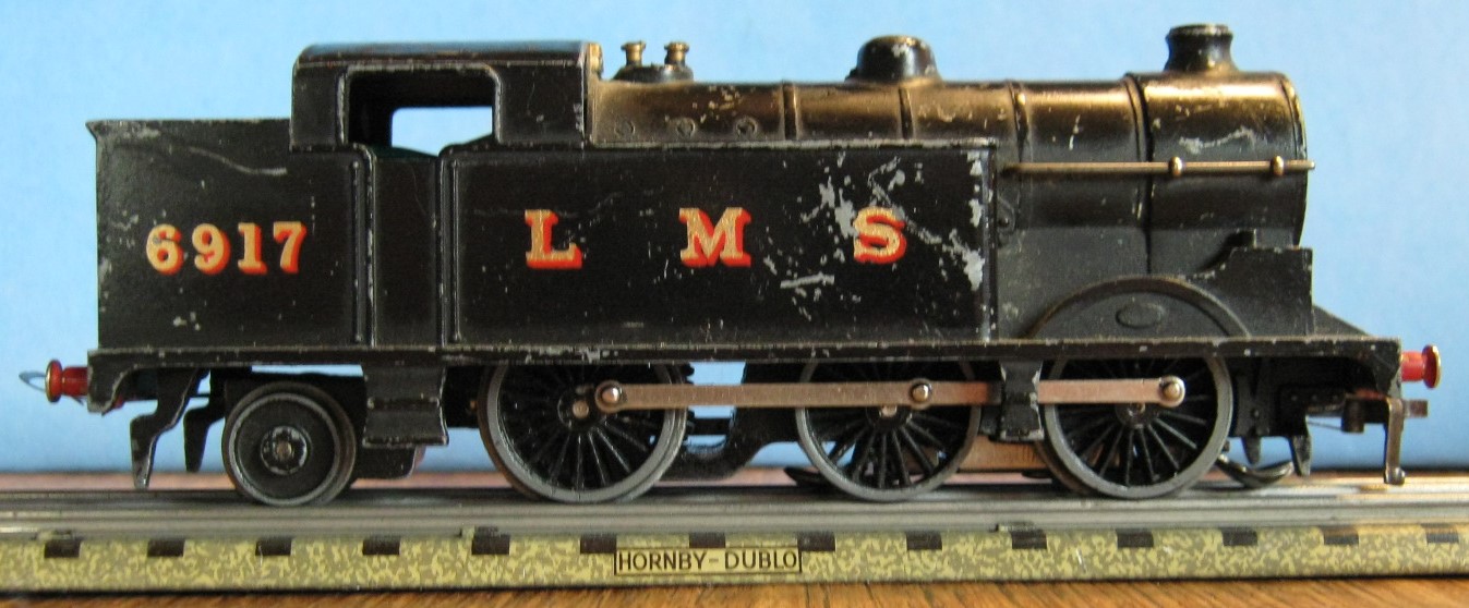 This is my only Hornby Dublo locomotive from the 1938-39 period, I have to be careful with it and it runs only when a visitor shows interest, otherwise it stays behind glass. It has alrady lost the front coupling and this has been replaced by a post-war coupling, otherwise it is all 1938 original.