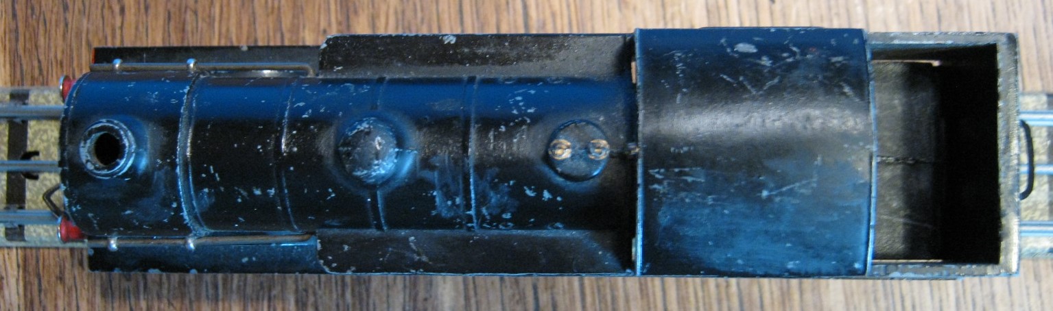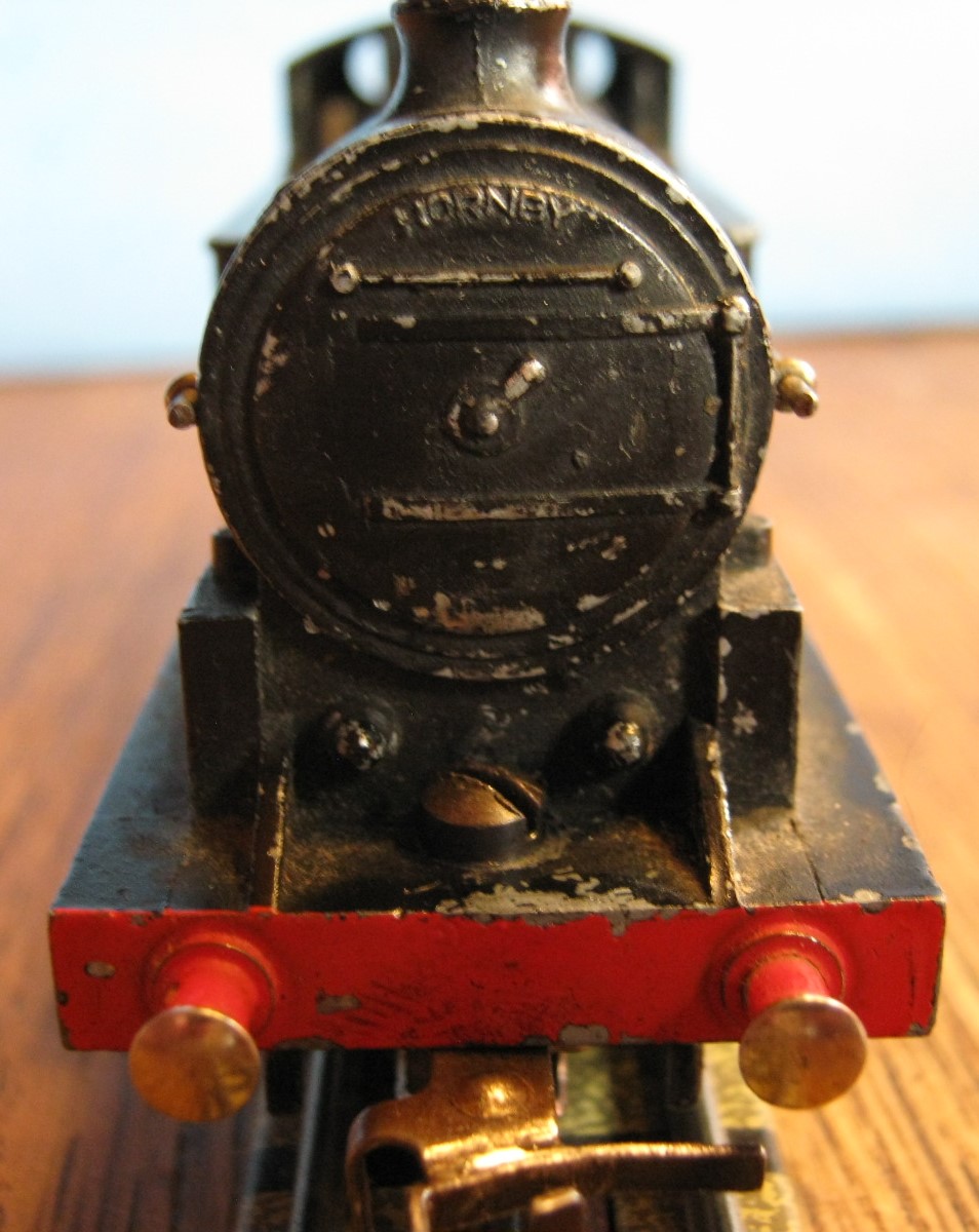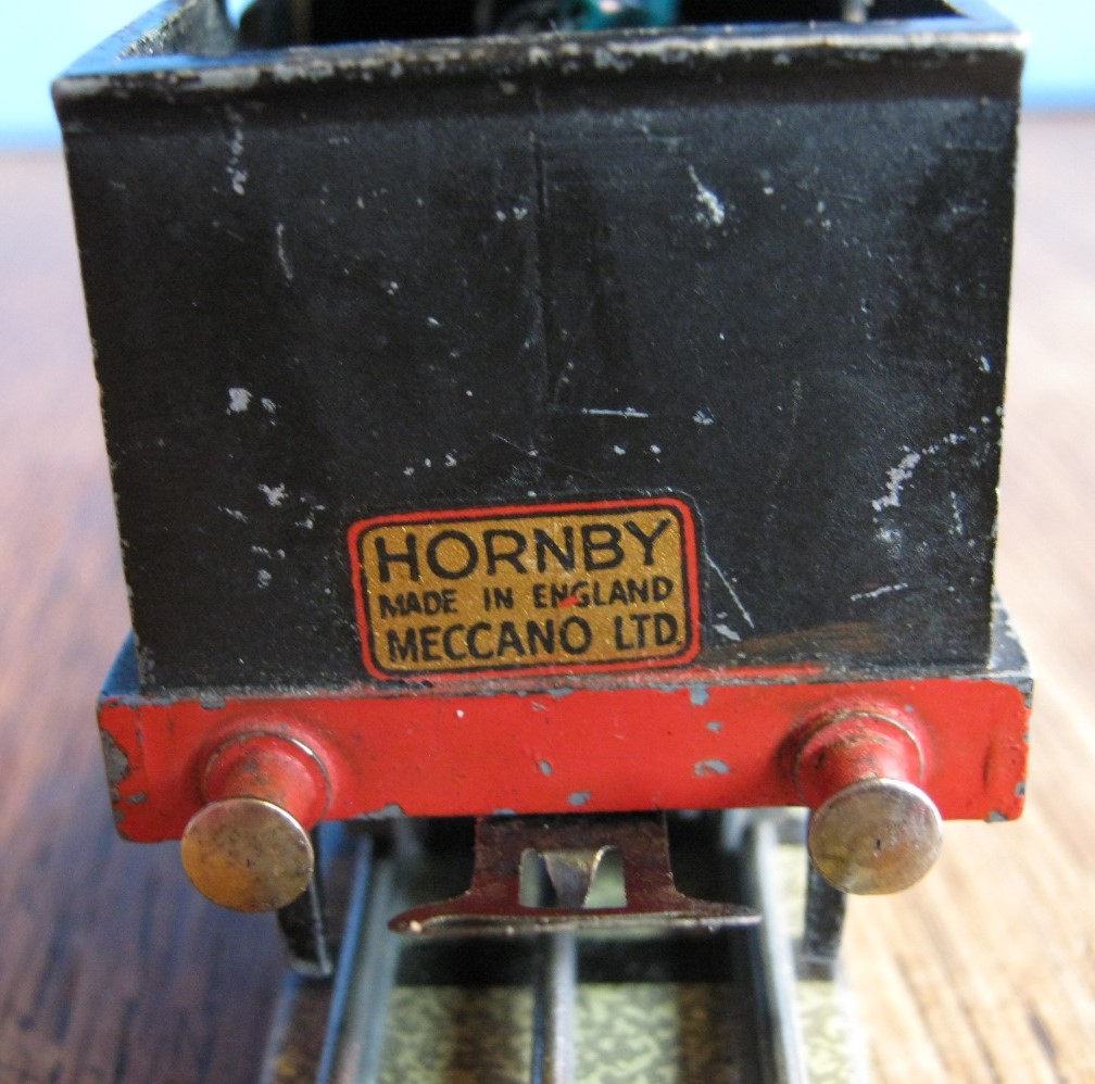 PRE-WAR MODEL: No cut out on the bufferbeam bottom, nickel plated buffers and "HORNBY" on the top of the firebox door