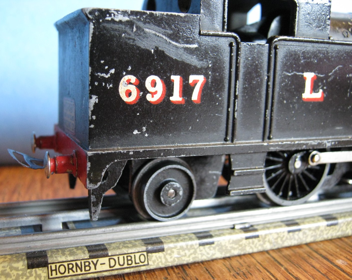 Here can be seen the rear solid disk wheels and the rear flat pre-war coupling. The coupling fits well with the 1949 Trackmaster goods wagons couplings. For more "modern" wagons there is the front HD coupling. (itis my intention to obtain an old coupling for the rear at a later date). I run this locomotive light, as I do not wish to burden the motor.