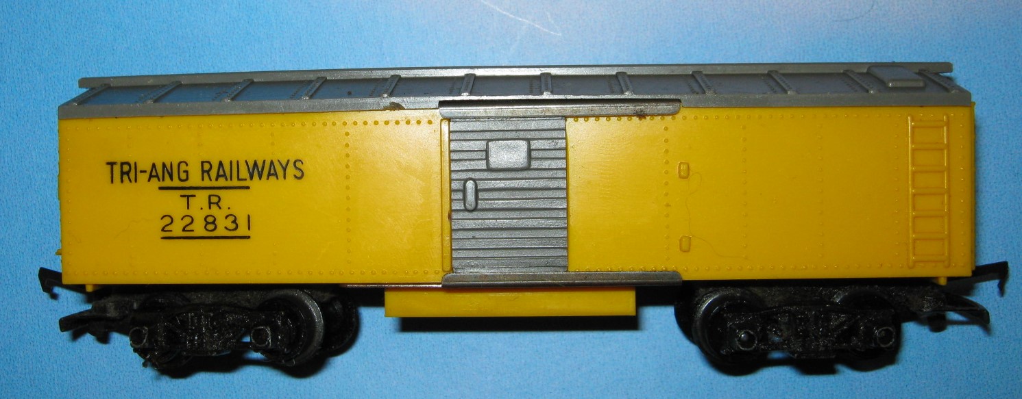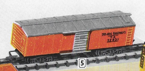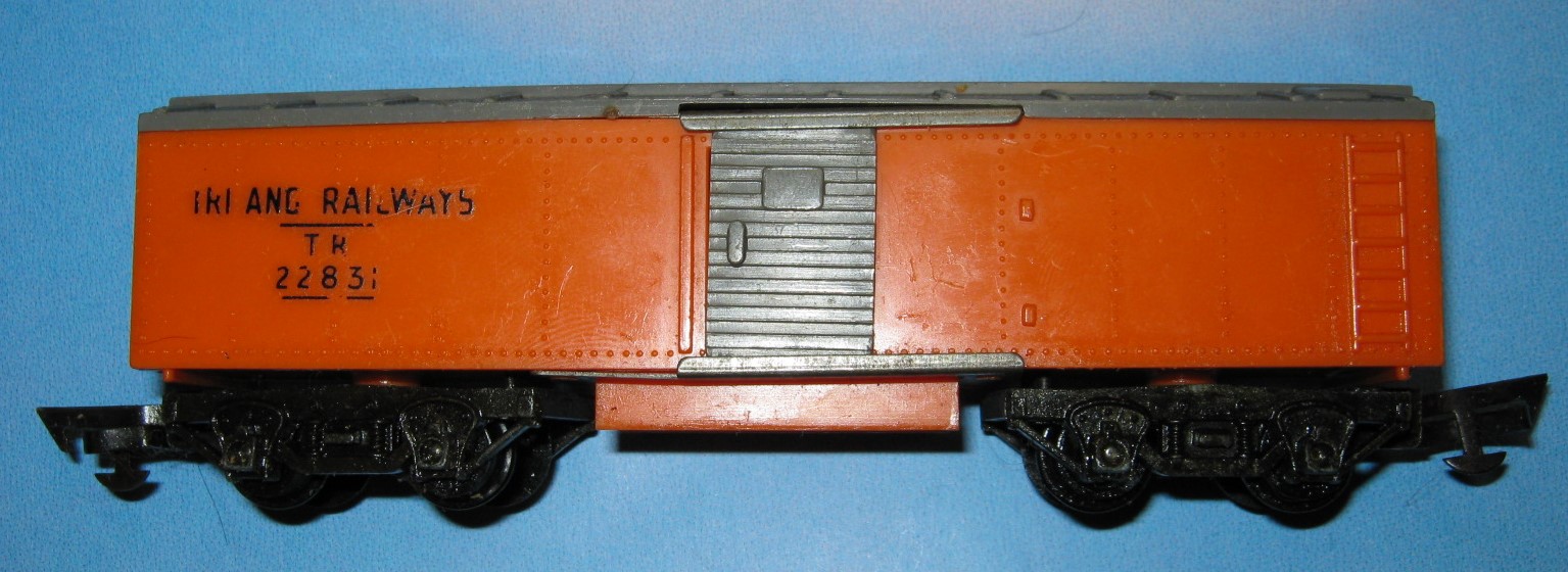 The last year for this short lived model. The tooling was re-worked to make the track cleaning car and the box car was replaced by more authentic models..