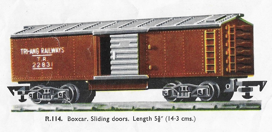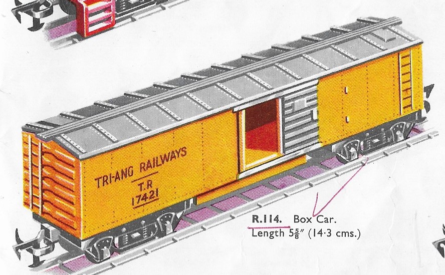 The model was very wrong in the detail and was much too short and by 1960 was being replaced by a more realistic Box Car, the existing tooling was used to produce a track cleaning car, which was well liked on British model railways.