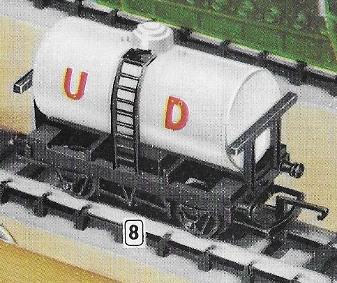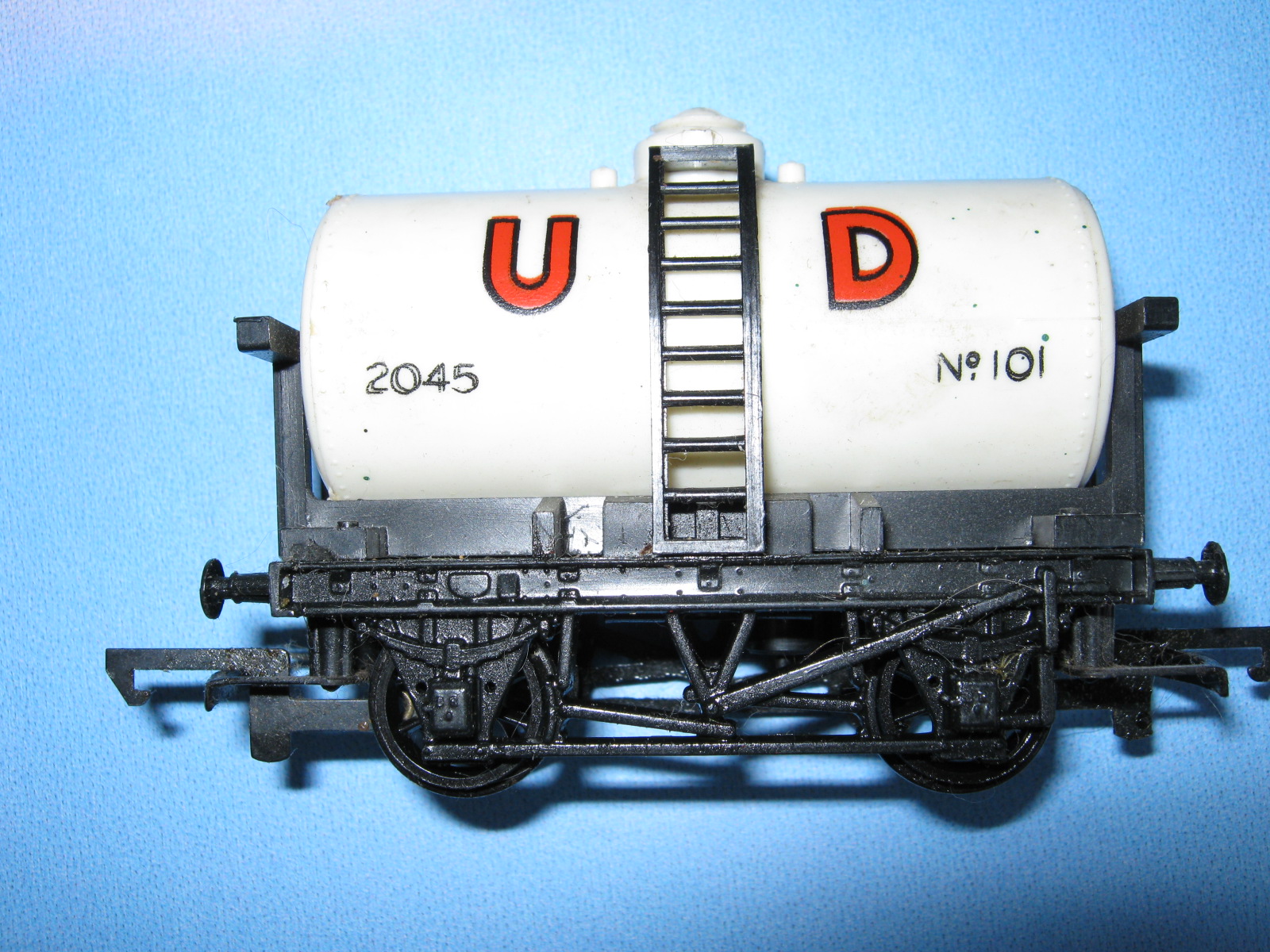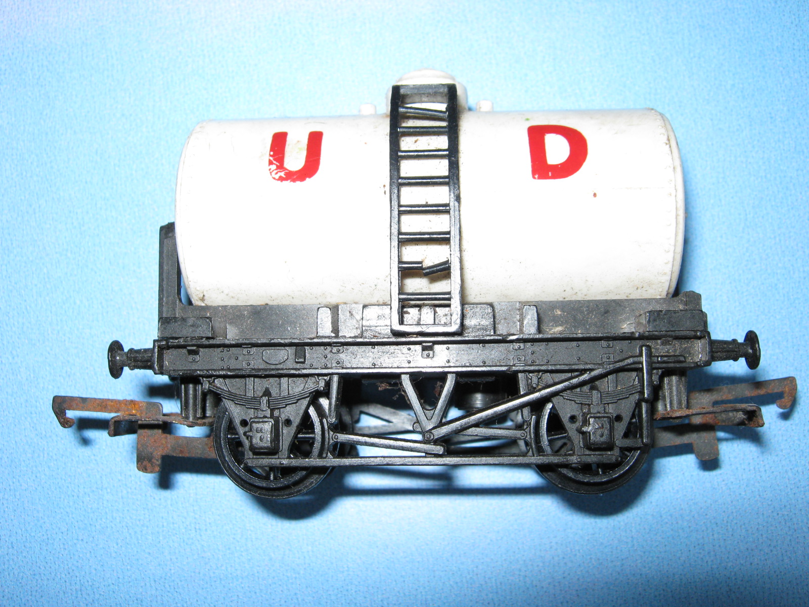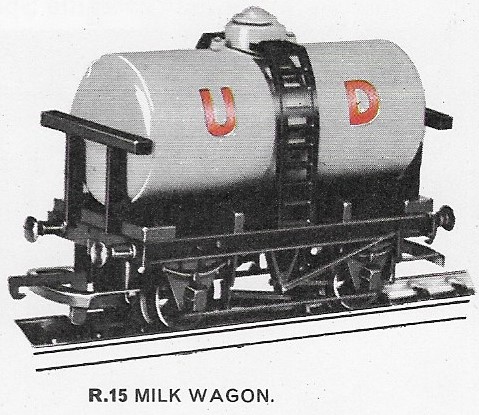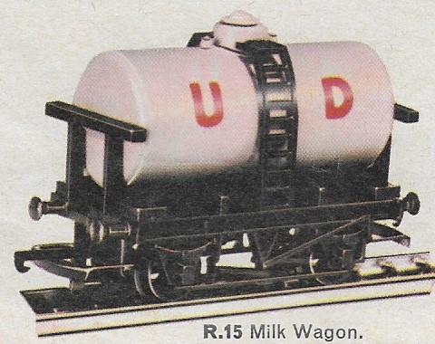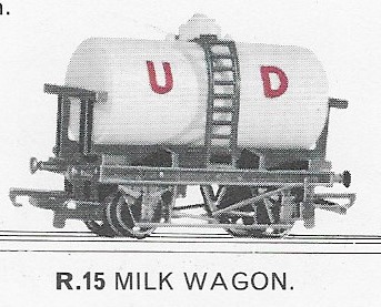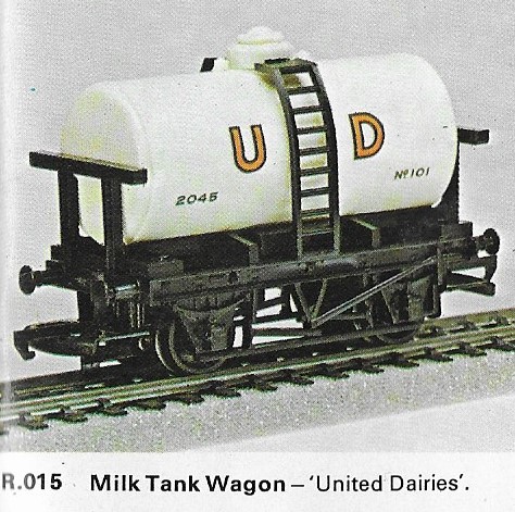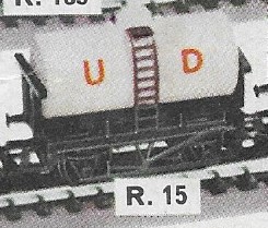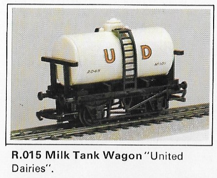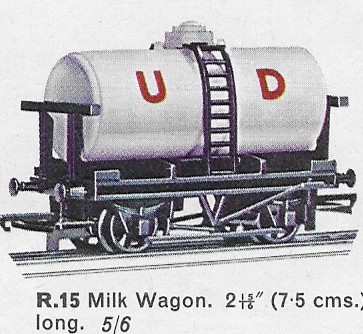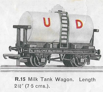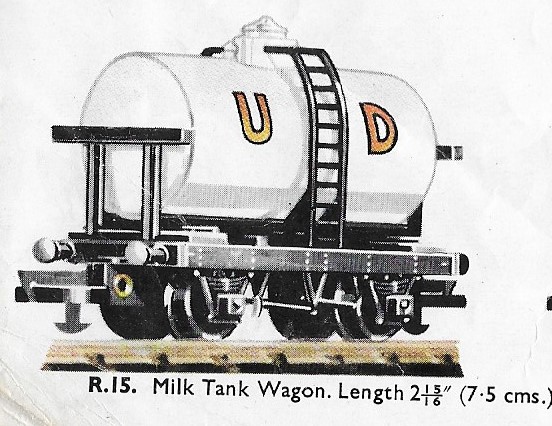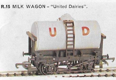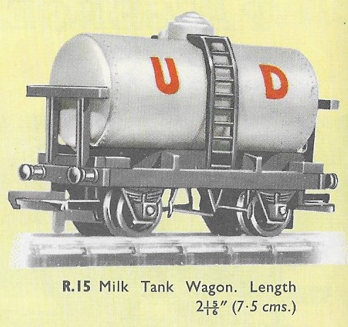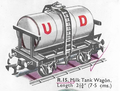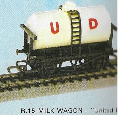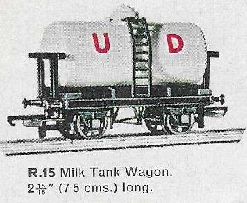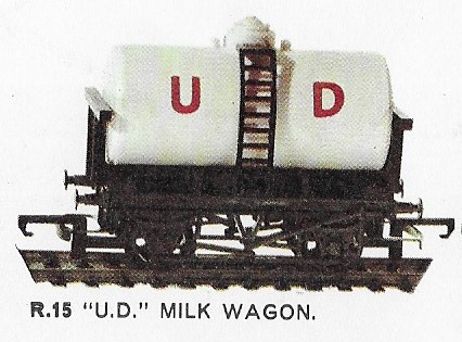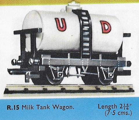 The Triang R15 Milk Tank Wagon entered the range in 1954, although it had been intended to release it in 1953. For the first four years the UD was in the form of transfers and from 1958 they were heat printed. The wagon was the only early tank design to be fitted with a ladder. It was produced in hundreds of thousands until it was replaced by a newer design in 1976 (R007).